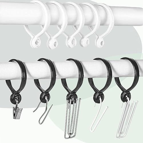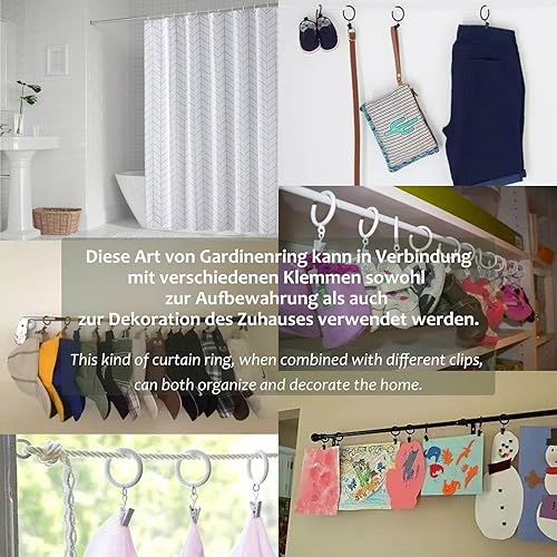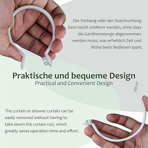 Lot de 60 anneaux de rideau ouverts, 40 mm, ID - Anneaux de rideau de douche en plastique - Anneaux de suspension pour rideaux de douche