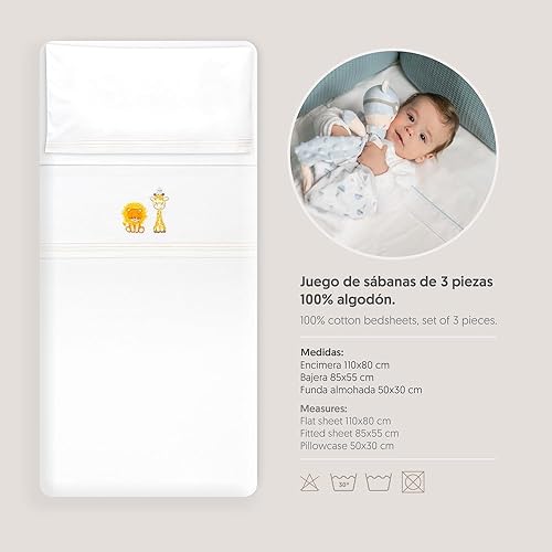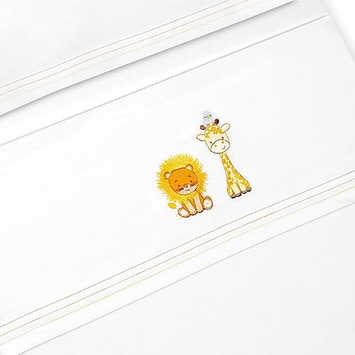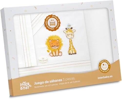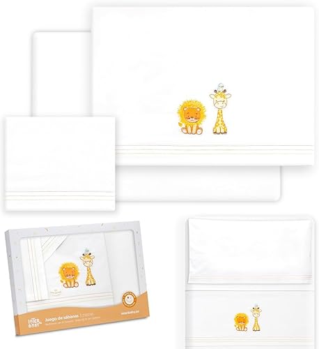 Interbaby Parure de lit bébé en Coton pour Berceau Motif Lion Girafe Oiseau 3 pièces Drap-Housse + Drap Plat + taie d'oreiller