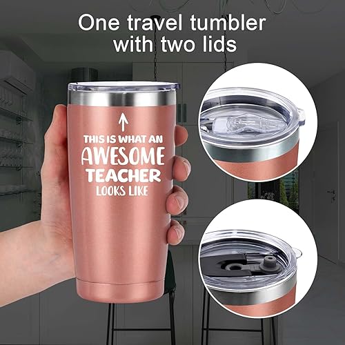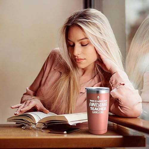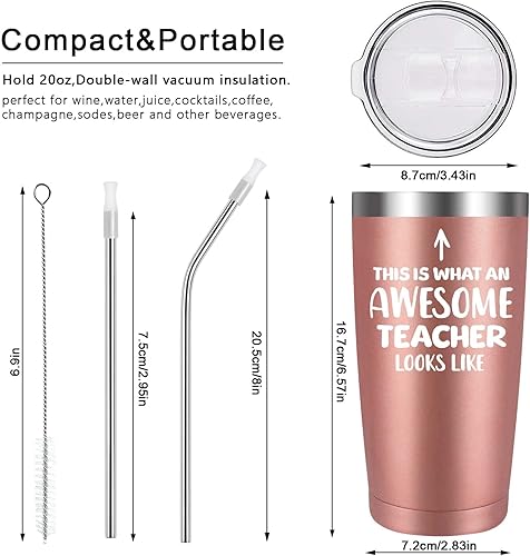 Livole Tasse isotherme anti-fuite, tasse isotherme avec paille et couvercle, tasse à café de voyage « This is What an Awesome Teacher »