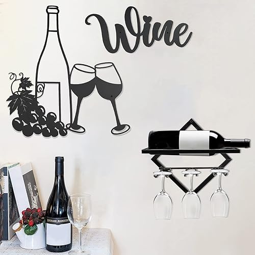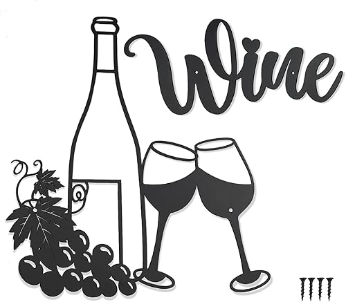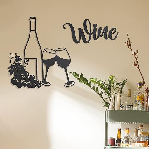 MERYSAN 2 Pièces raisins de bouteille de vin Décoration Murale en Métal, wine Art Mural décor Signe pour Café Coin Cafe Cuisine Salon de Thé Restaurant Pub Decor (35 x 30 cm)