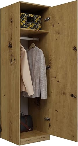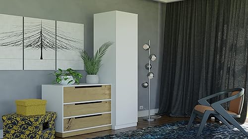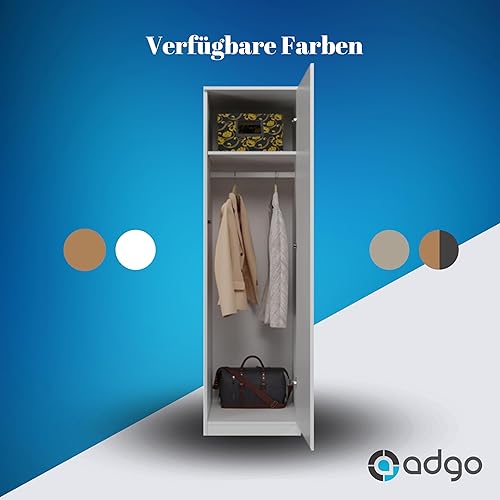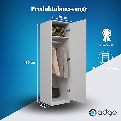 ADGO SD-50 Penderie étroite pour vêtements, armoire haute, blanche, 50 x 50 x 180 cm, armoire pour chambre à coucher, multi-usages, avec cintres et étagère de plafond (livrée en 2 paquets)
