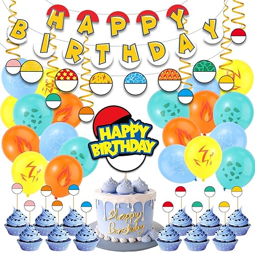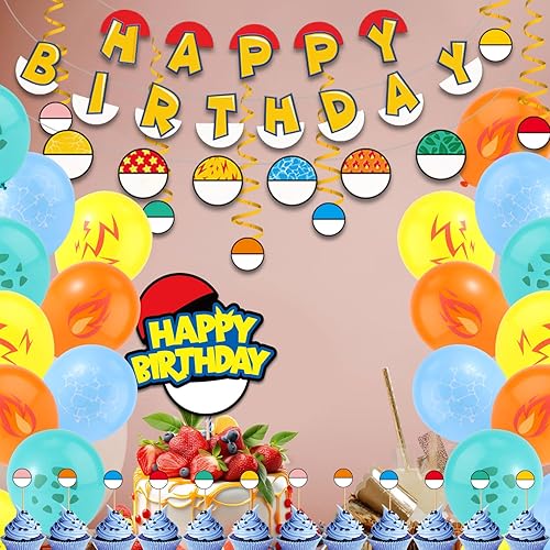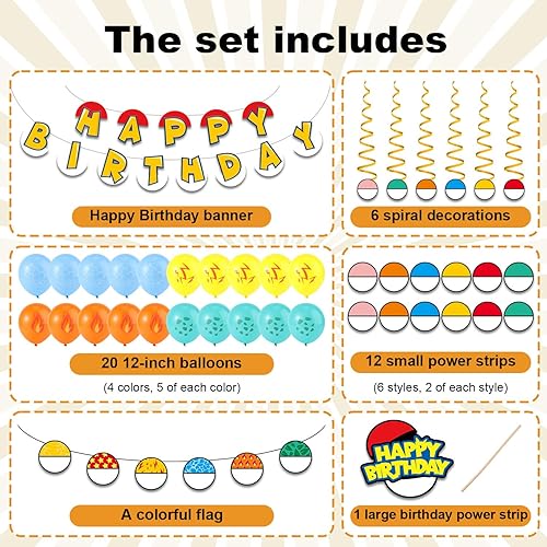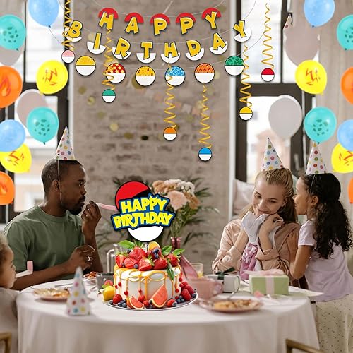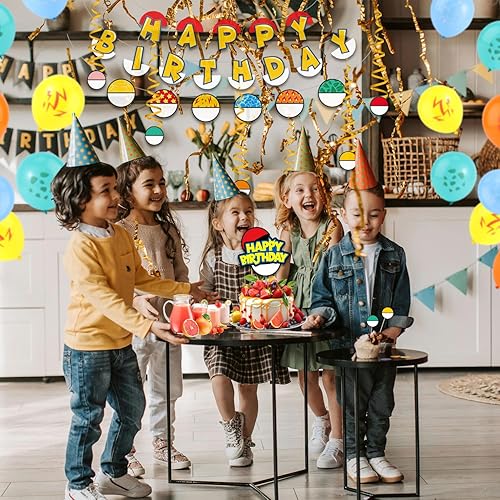 SAVITA Ensemble de Décoration de Fête d'Anniversaire Dessin Animé, Bannière d'Anime Rouge et Blanc Ballon Drapeau Rond Décorations de Gâteaux à Suspendre Vortex pour Décoration d'Anniversaire