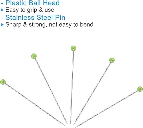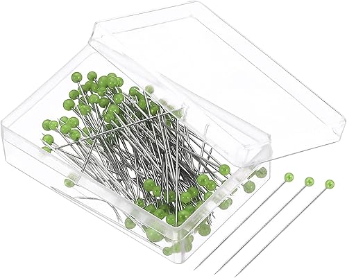 PATIKIL Couture Épingles, 100 pcs 1.5 Pouce Perlé Boule Tête Épingles Droit Épingle pour Tissu, Décoratif, Tissu Fabrication, DIY, Vert