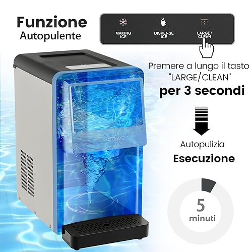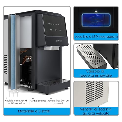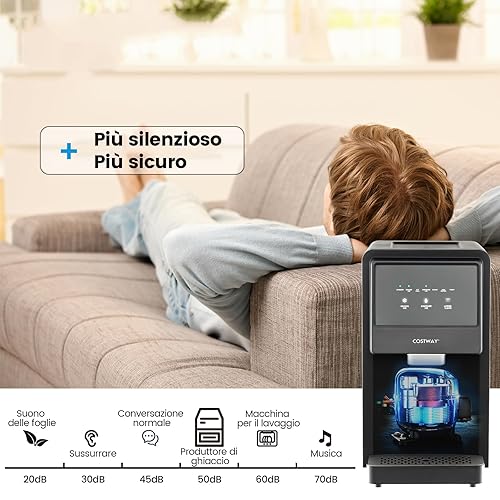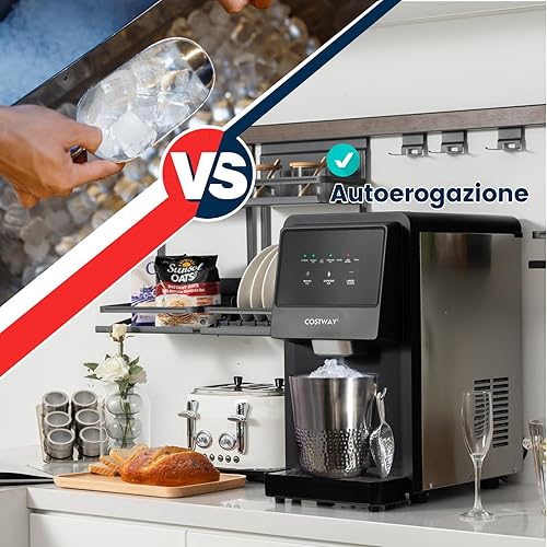 COSTWAY Machine à Glaçons avec Filtre à Eau, Nugget Ice 27kg en 24h, Affichage LED de Comptoir, avec Capteur Infrarouge et Autonettoyant, Stockage 4 kg, Silencieuse pour Maison, Bureau, Bar