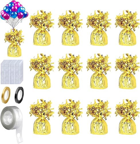 Lot de 12 poids lourds pour ballons à l'hélium, avec 2 rouleaux de ruban, 1 rouleau de bande d'arche de ballons et 200 points de colle pour ballons, accessoires pour fêtes d'anniversaire, événements