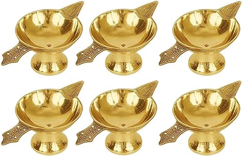 IMTRA FASHION Ensemble De 6 Lampes À Huile Indiennes Diya Avec Des Mèches en Coton Pour Pooja Aarti Akhand Jyoti Pour Décorations Diwali Cadeau