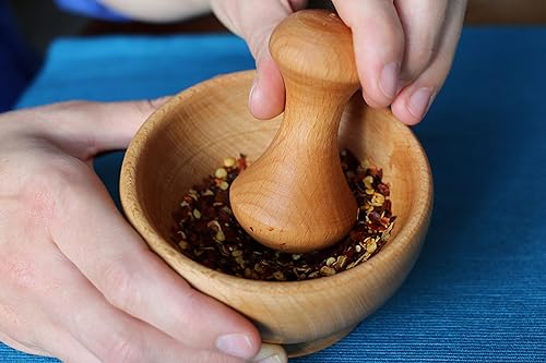 efo Ensemble de Mortier et Pilon en Bois - Petit Pilon et Mortier Idéal pour Broyer les Épices, les Herbes et l'Ail – Pilon et Mortier Durable au Design Ergonomique– Taille 10,5 x 5,5 cm