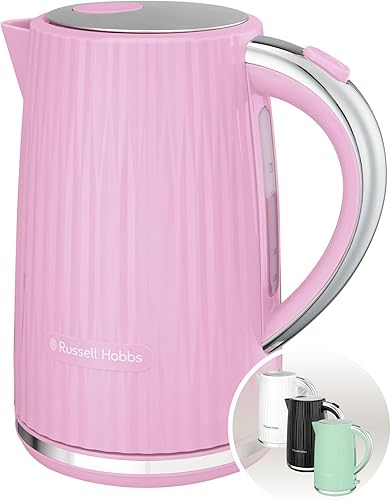 Russell Hobbs Bouilloire électrique (Eau chaude, thé, café, 1,7 L, couvercle à ouverture par pression, bec verseur parfait, filtre amovible et lavable, voyant lumineux, blanc, 2400W) Eden 27360-70