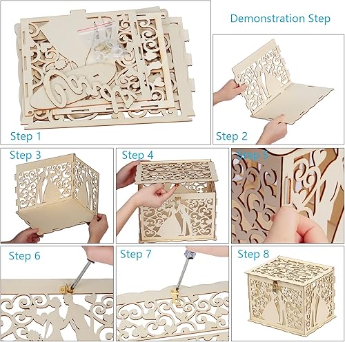 AirSMall Boîte à Cartes de Mariage en Bois, Mariage Tirelire Mariage en Bois, Tirelire de Mariage Boite Cadeau Bois à Clé pour Réception Bébé Douche Anniversaire Fête