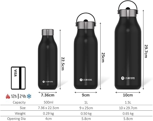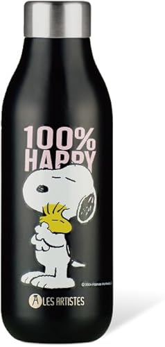 LES ARTISTES Paris A-4375 Bottle'Up 2.0, Thermos 500 ml, Gourde isotherme sans BPA, Réutilisable, Garde au chaud 12h et au froid 24h, Légère, Acier Inoxydable, Design Happy Snoopy