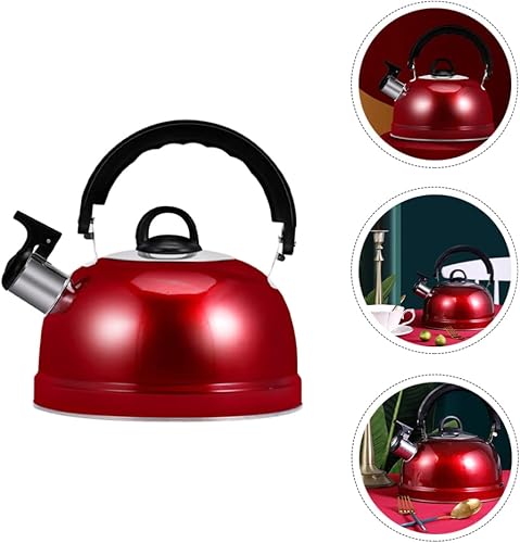 Alipis Bouilloire à Thé sur La Cuisinière Bouilloire à Thé Sifflante Théière en Acier Inoxydable avec Poignée Bouilloire à Domestique 3. 17 Pintes/ 3L Rouge