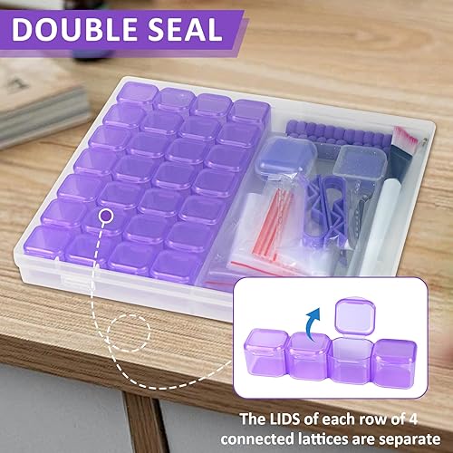 xyuayamz Diamond Painting Boite de Rangement, 59 Pièces Accessoires Diamant Painting, Boites Diamants Painting, Boîtes D'accessoires de Peinture au Diamant pour Diamants Perle DIY Artisanat, Violet