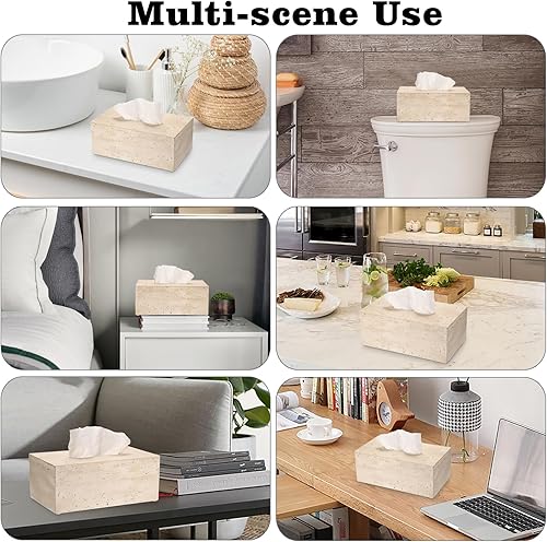 TOLIDA Housse rectangulaire en travertin pour boîte à mouchoirs – Distributeur de papier de soie de table, organisateur de mouchoirs beige pour la maison et le bureau