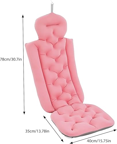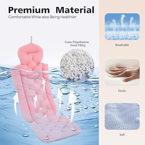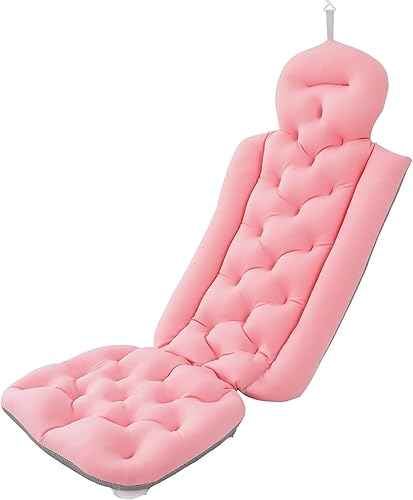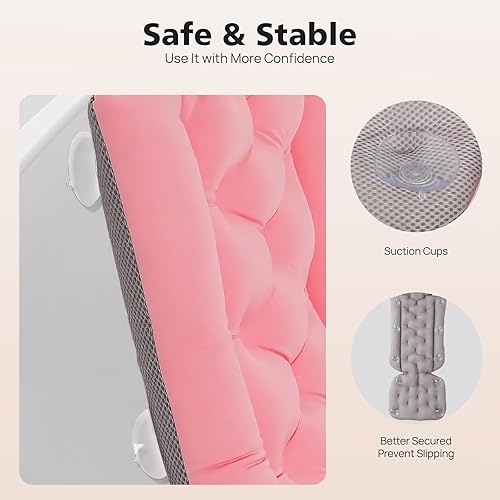Coussin de bain doux - Tapis de bain tout le corps - Maille aérée - Coussin de bain très élastique avec 10 ventouses antidérapantes puissantes - Appuie-tête - Dossier confortable pour baignoire (rose)
