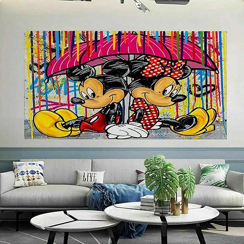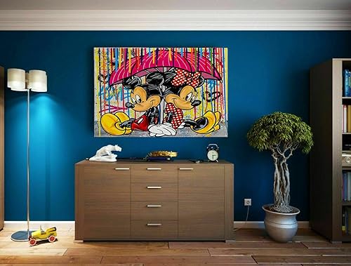 Magic Canvas Art - Impression sur toile Pop Art Motif Mickey Mouse Minnie - 1 pièce 120 x 80 cm - Wall Art - Chambre d'enfant