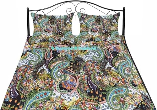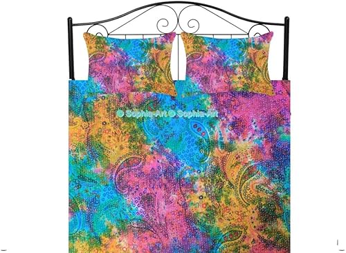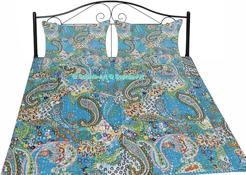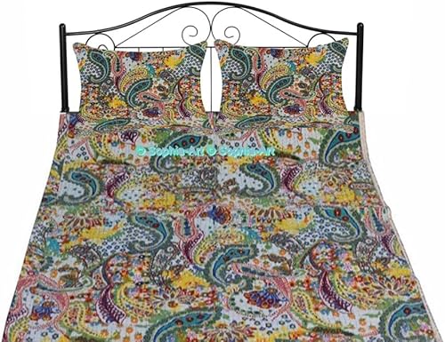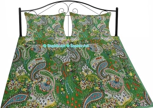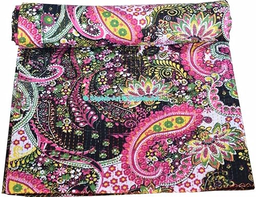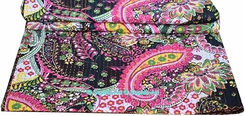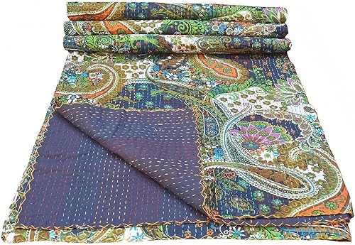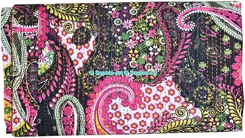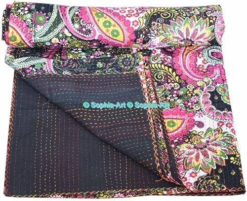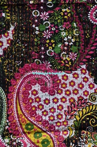 Sophia Art 108108 Kantha Couvre-lit indien fait à la main Imprimé cachemire Kantha Couvre-lit bohème Beige