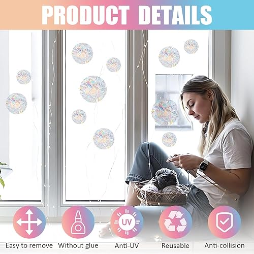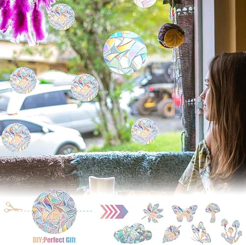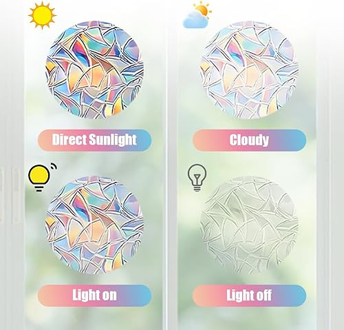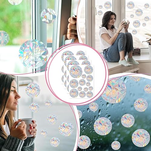 52 Pièces Suncatcher Sticker, Anti Collision Arc-en-Ciel Fenêtre, Stickers Anti-Collision Oiseaux, Anti Collision Window Stickers for Bird, Rainbow Autocollant en Verre, pour Fenêtres Verre