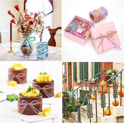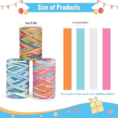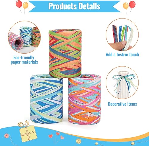 Ruban de Raphia en Papier 240M en 3 Rouleaux Ficelle de Papier Coloré Ribbon d'emballage de Ficelle pour Emballage de Cadeaux Bouquet de Fleurs Tissage Décoration
