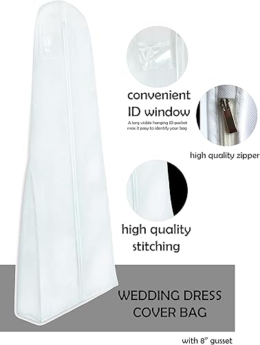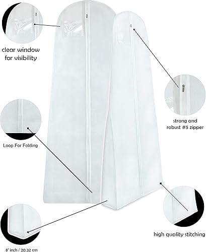 Wedcova Sac pour robe de mariée | Sacs à vêtements suspendus | Protection de voyage pleine longueur | Housse de rangement pour vêtements longs avec fermeture éclair pour femme | Blanc avec logo The