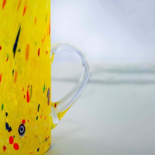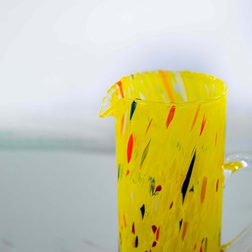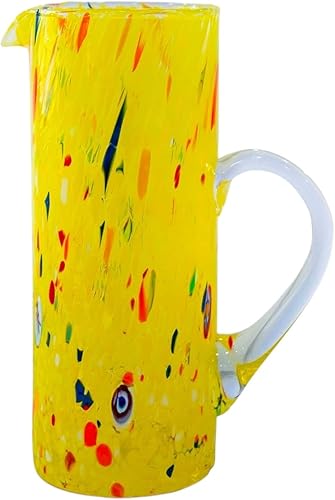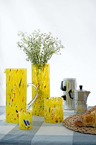 MurArt Pichet en verre de Murano 600 ml forme cylindrique de 22 cm de haut décoré avec des murrines travaillées à la main Made in Italy