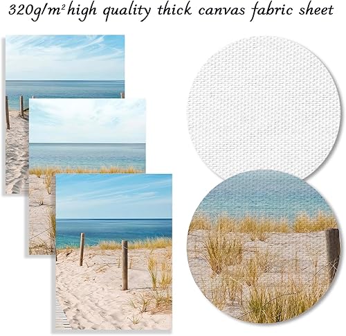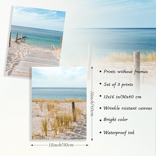Dazzlewall Lot de 3 Art Mural en Toile de Plage Impression Bleu Ciel Mer, Décoration Murale de Plage pour Salle de Bain Chambre 30x40 cm Sans Cadre