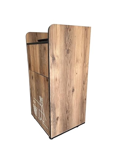 Meuble Poubelle pour Fast Food, Snack, caféteria, Restauration Rapide, Professionnel, horeca, avec bac en PVC et Trappe à Bascule Coloris BOIS