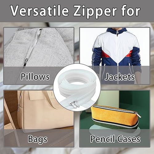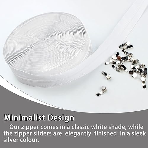 10m Fermeture Eclair en Nylon, #4 Fermeture à Glissière en Plastique à Extrémité Ouverte, Fermeture Eclair de Séparation Légère avec 20 Curseurs Argentés pour Jackets Doudounes Manteaux