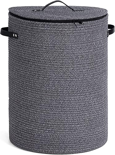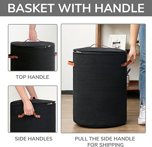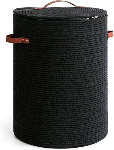 CHICVITA Grand panier à linge avec couvercle, panier à linge pour chambre à coucher, panier à linge pour vêtements, couvertures, jouets, panier décoratif tissé pour salon, 38,1 x 50,8 cm, noir