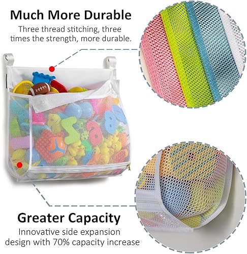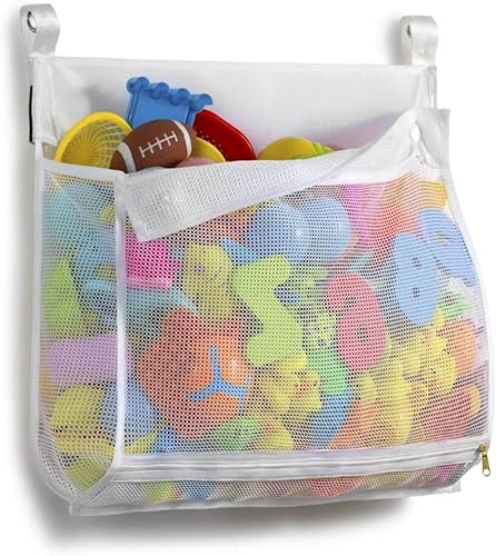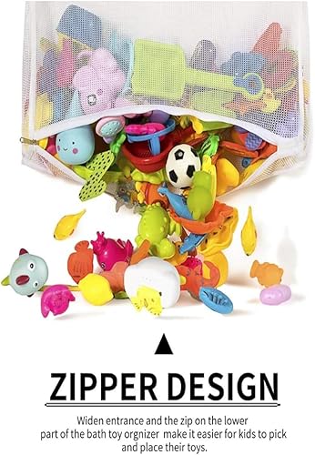 FIUIRYA NATURAL PRODUCTS Rangement pour jouets de baignoire, sac de rangement pour jouets de bain, sac de rangement en maille avec fermeture éclair, idéal pour la salle de bain de la famille (blanc)