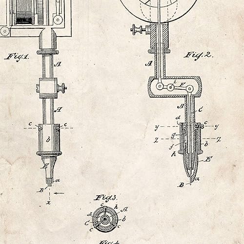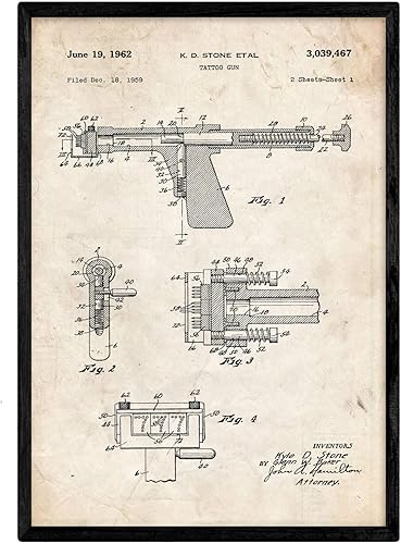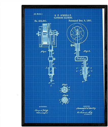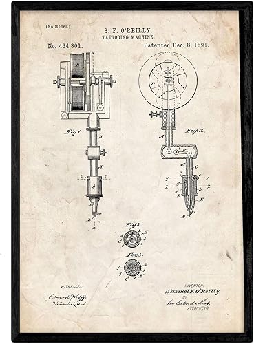 Nacnic Affiche Machine de Tatouage de Brevet. Feuille avec Le Vieux Brevet de Dessin en Format A3 et Vintage Background