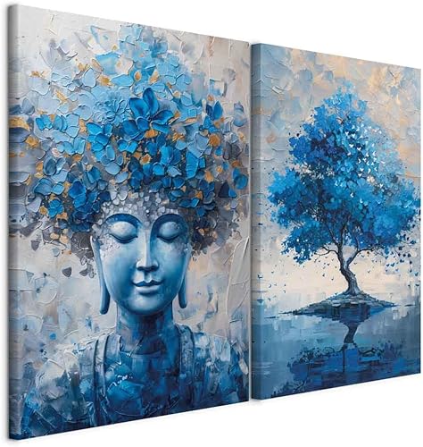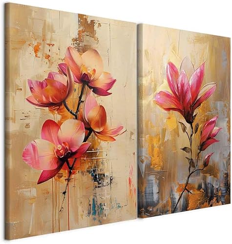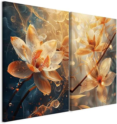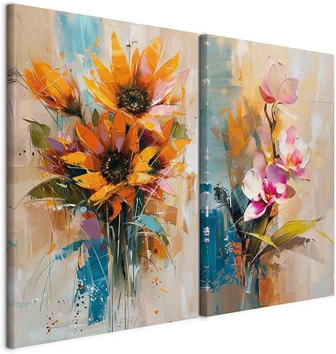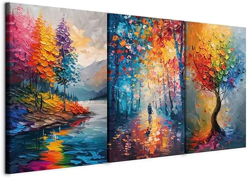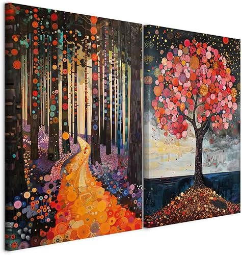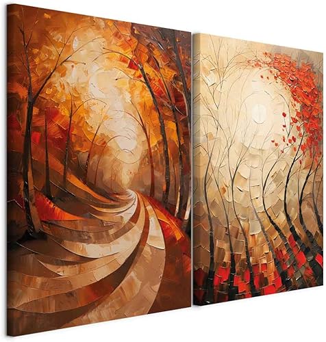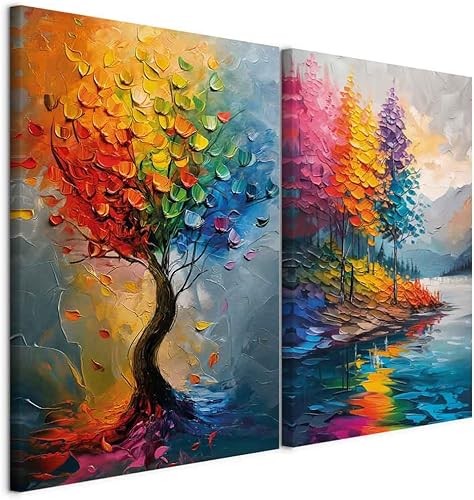 murando - Ensemble de 2 tableaux d'art décoratif 40x30 cm - Impression sur toile décoration murale peinture maison salon - Impression de tableau multicolore étang forestier et arbres c-H-10080-b-a