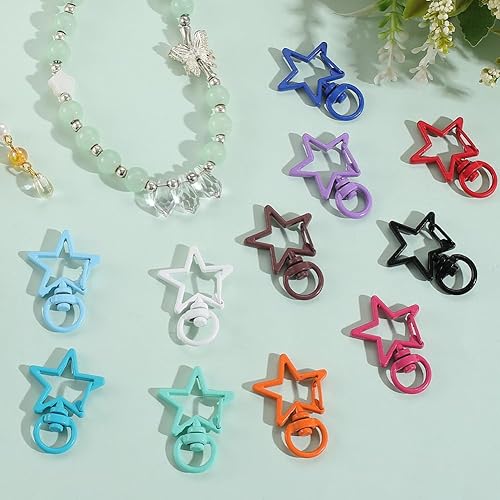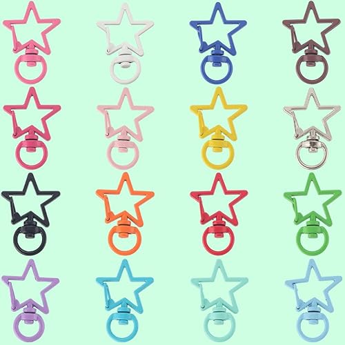 SUNNYCLUE 1 boîte de 32 fermoirs Pivotants en Forme D'Étoile 16 couleurs en Alliage Métallique Coloré avec Anneau à Ressort Boucle à Pression Crochet Porte Clés pour la Fabrication de Bijoux Porte Clé