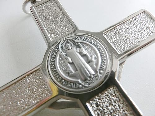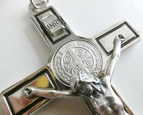 GTBITALY 10.380.11 - Croix de saint Benoît avec ligne émaillée à la main Longueur 12 cm avec Anneau - Pour Exorcisme