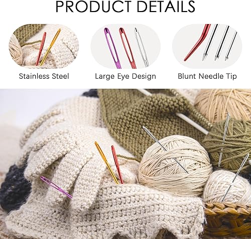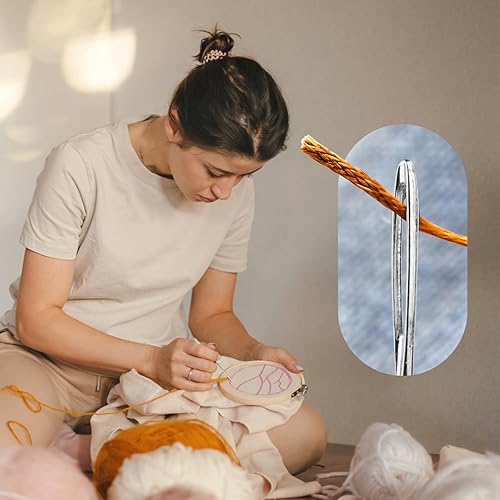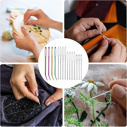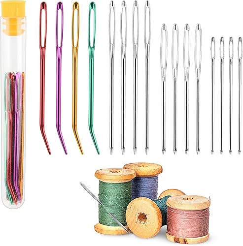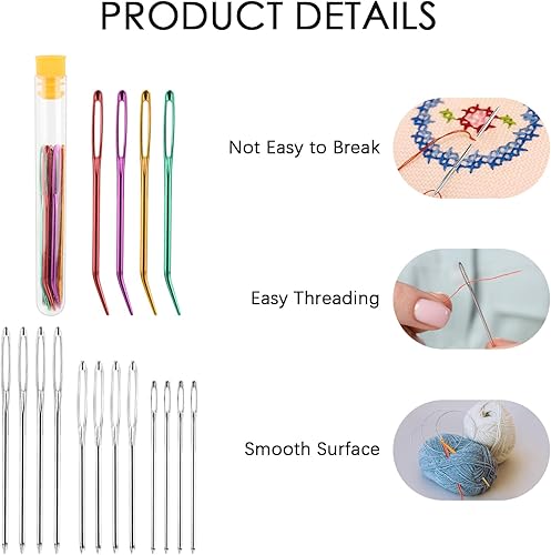 16 PCS Aiguilles Couture Gros Chas,Aiguilles à Main avec 1 Tube de Rangement,Aiguilles à Coudre à Gros Chas,Pointe Courbée Aiguille À Tapisserie pour Le Point Croix, la Couture, la Broderie 4 Tailles