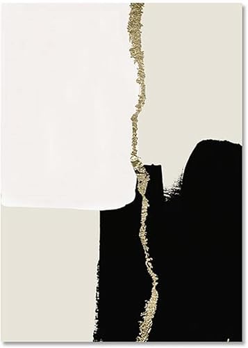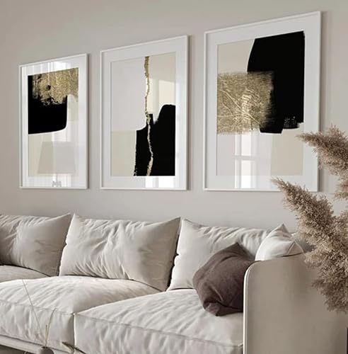 HEHGVCF Lot de 3 posters sur toile - Modernes - Minimalistes - Beige - Noir et doré - Géométrie abstraite - Décoration murale - Sans cadre - 40 x 60 cm - Géométrie géométrique