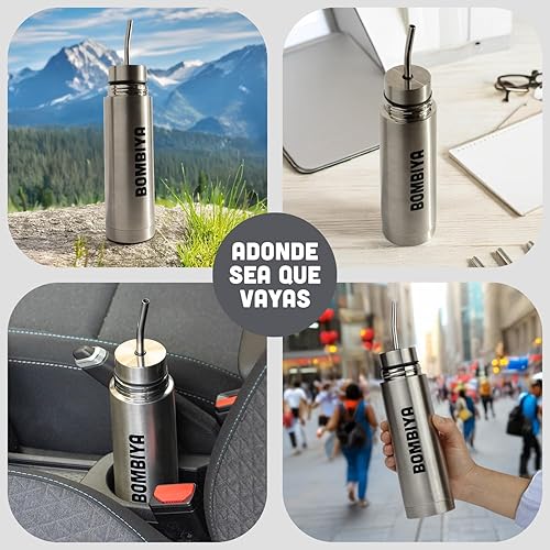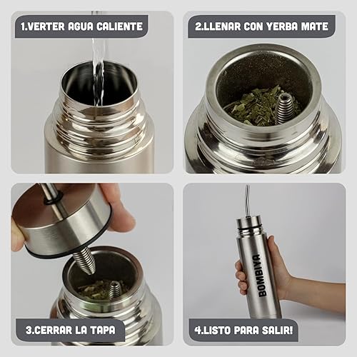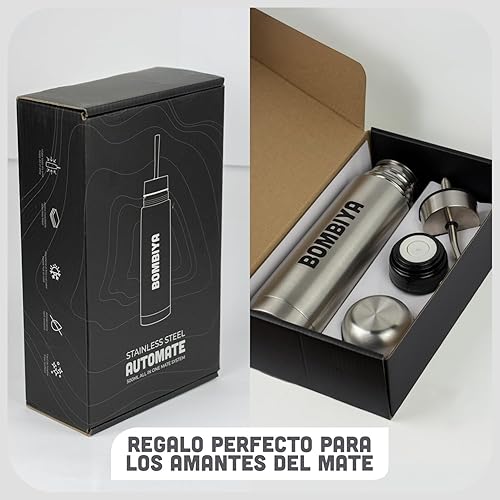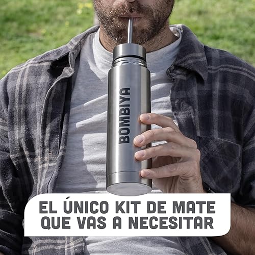 Bombiya - Thermos mat auto-amorçant avec toutes ses parties en acier inoxydable - Kit tout-en-un ajoutez simplement votre yerba - 2 en 1 en changeant son couvercle est un thermos classique