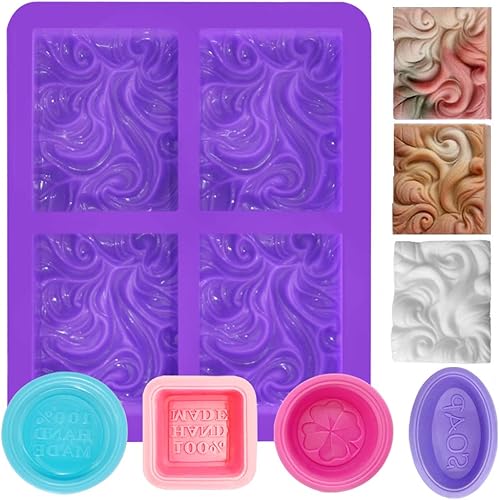FineGood Lot de 5 moules à savon en silicone pour la fabrication de savons, moules rectangulaires à 4 cavités pour muffins, cupcakes, pain