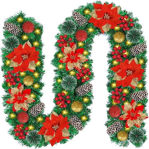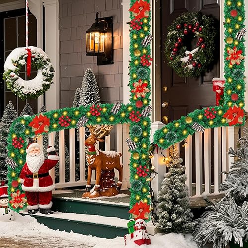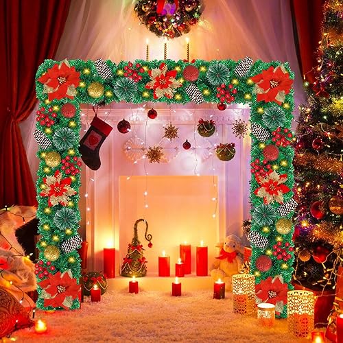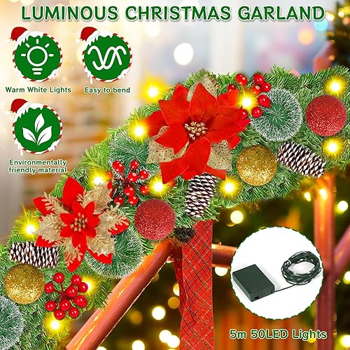 Guirlande de Noël, Guirlande Sapin Artificiel, 270cm Guirlande Sapin Lumineuse, Guirlande de décoration de Noël avec lumières, pour Mur, cheminée, escalier, décoration de Noël