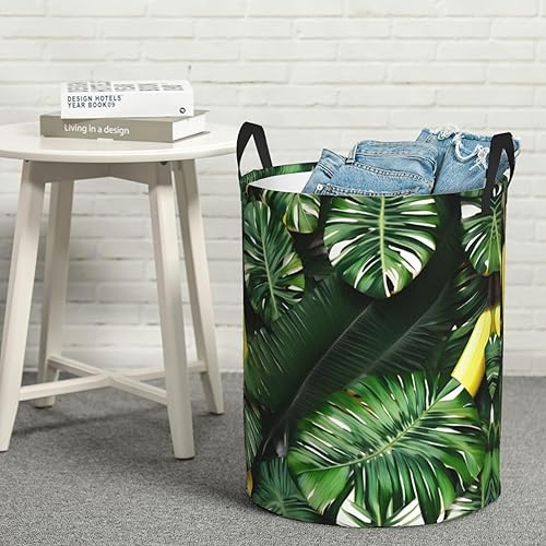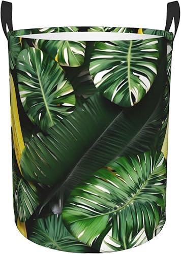 Banane et palmier imprimé panier à linge seau de rangement de vêtements avec poignée ronde en tissu Oxford pliable boîte de rangement pour jouets
