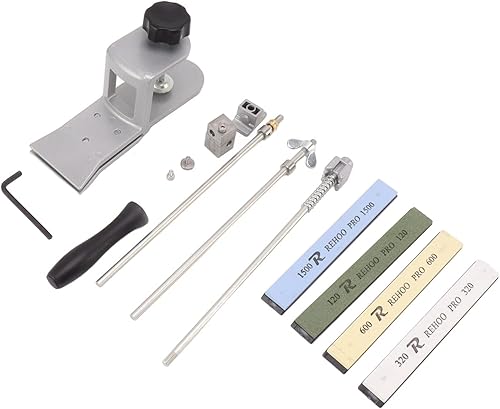 Asixxsix Système d'aiguisage pour Couteaux de Cuisine, aiguisoir Professionnel avec 4 Pierres à aiguiser Rotation à 360° Réglage de l'angle Poids léger Polissage Kit d'aiguisage de Couteaux