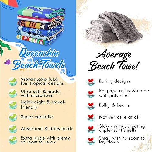Queenshin Serviette de Plage Grande en Microfibre,90x180cm,Absorbant,Séchage Rapide,Anti-Sable,Légèreté et Portabilité,Plages, Sports,Voyages,Sauna,Piscines,Animaux Colorés
