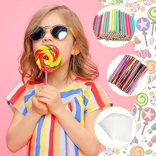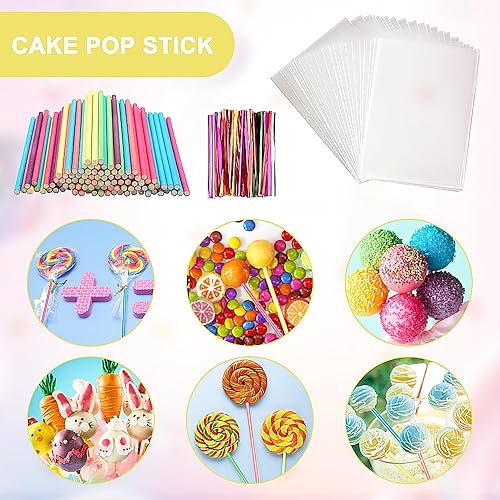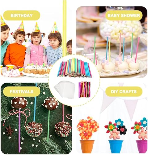 100 Bâtonnets Cake Pop, 100 Sachet Bonbon et 100 Ties Torsadées, Batonnet Pop Cake, Bâtonnets pour Sucettes, Bâtonnets en Papier pour Gâteaux, Baton Sucette Pop Cake pour Chocolat Pâtisseries Biscuits