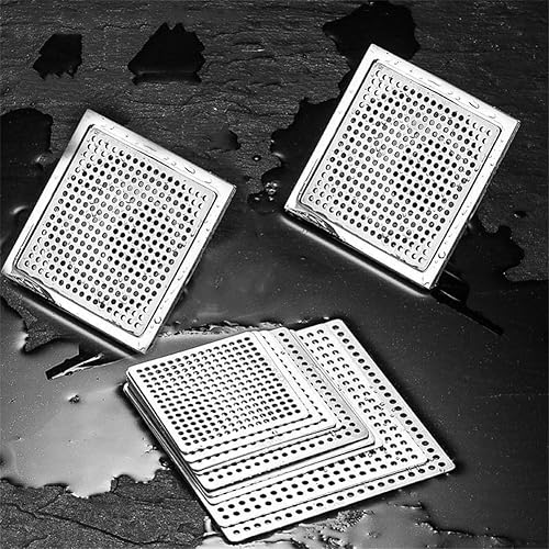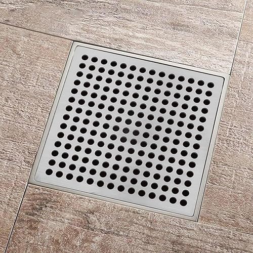 Besshepplo Siphon de sol en acier inoxydable, couvercle carré anti-odeur, grand siphon de douche, remplacement efficace des cheveux (9,2 cm)