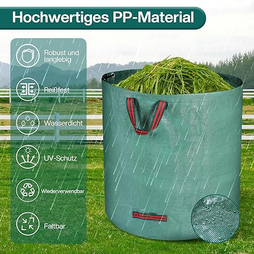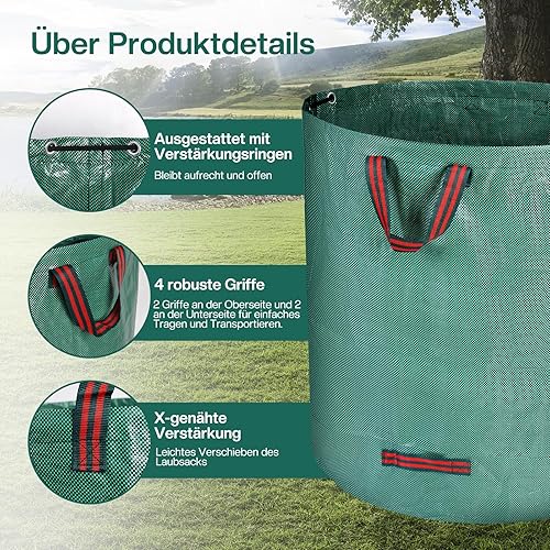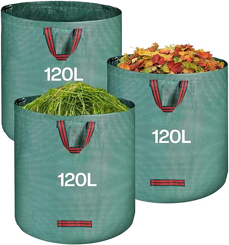 QOEOTUY Sac Jardin Dechets Verts 3x 120L - Sac Dechets Verts avec Poignées, Pliable et Réutilisable - Sacs Vegetaux Jardin pour Ramasse Feuilles Mortes