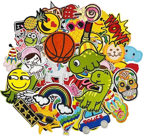 Lot de 60 écussons thermocollants pour enfants, patchs textiles de dessin animé, accessoires décoratifs, adaptés pour la couture de jeans, la réparation de vêtements