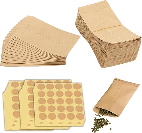 200 Pièces Enveloppe Sacs en Papier et 200 Pièces Étiquettes Rondes Kit, Graines Sachet Kraft pour Stockage, Mini Sacs en Papier Kraft pour Emballer, Stocker ou Collecter de Petits Graines