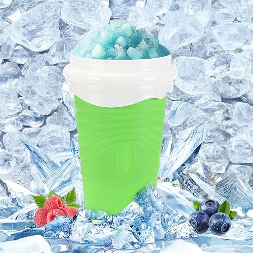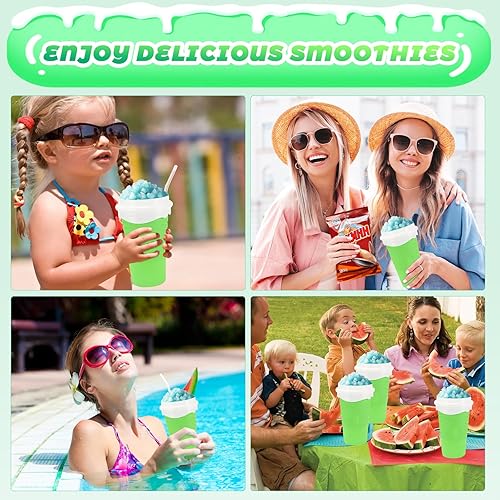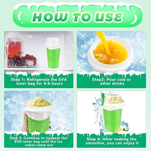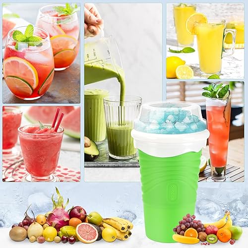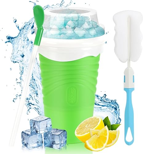 Slushy Maker, Gobelet À Slush, Silicone Slushy Maker Cup, Gobelet À Neige Avec Cuillère À Paille Et Brosse pour Gobelet, pour Diy Cola Ou Jus(vert)