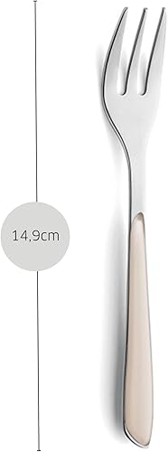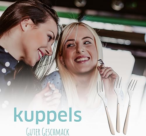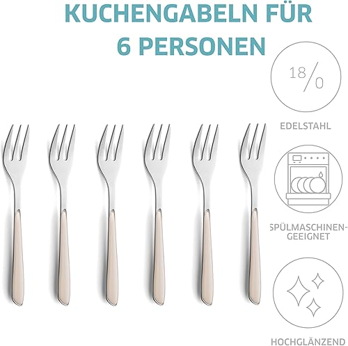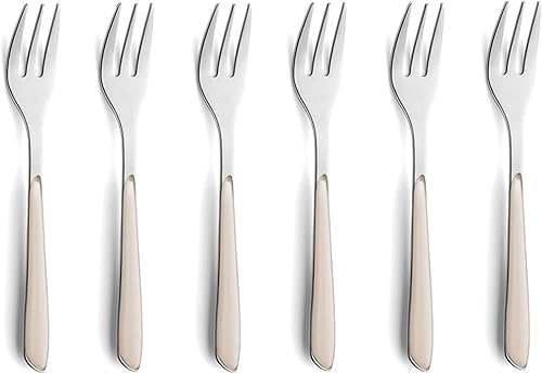 Kuppels Prisma Lot de 6 fourchettes à gâteau en acier inoxydable 18/0 6 pièces pour 6 personnes, poignées en plastique de qualité supérieure en coton blanc, inoxydable et passe au lave-vaisselle