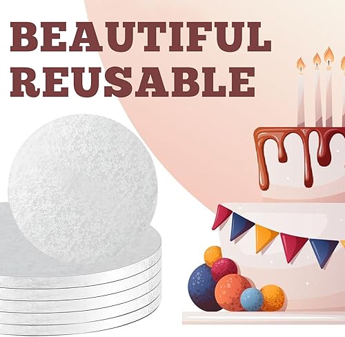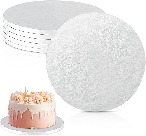 WIYETY 5 Pièces Planches à Gâteau Cake Board in Papier Carton, Planches à Gâteau Rondes, Support Gateau, Rond Support Gateau, Plateau à Gâteaux pour Transport de Gâteaux et Tartes, 12 Pouces Argent