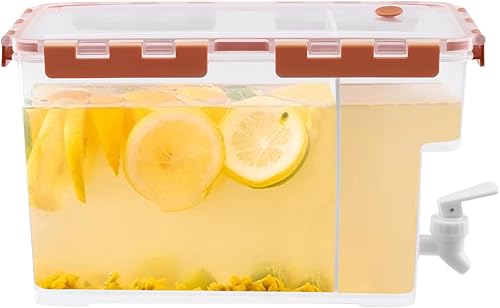 HuKaiL Distributeur de boisson 6 l / 1,32 l avec robinet et cloison de séparation, limonade, récipient à jus, bouteille rectangulaire avec couvercle, pour réunions, fêtes, orange